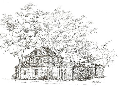 FEATURED DRAWING: "Flyover" depicts mallard and hen above the boyhood home of a client. This 22" x 28" color pencil and pastel, drawn from taxidermy mounts and aerial photos, is striking because of its attention to detail and juxtaposition with a three-generation farmstead.